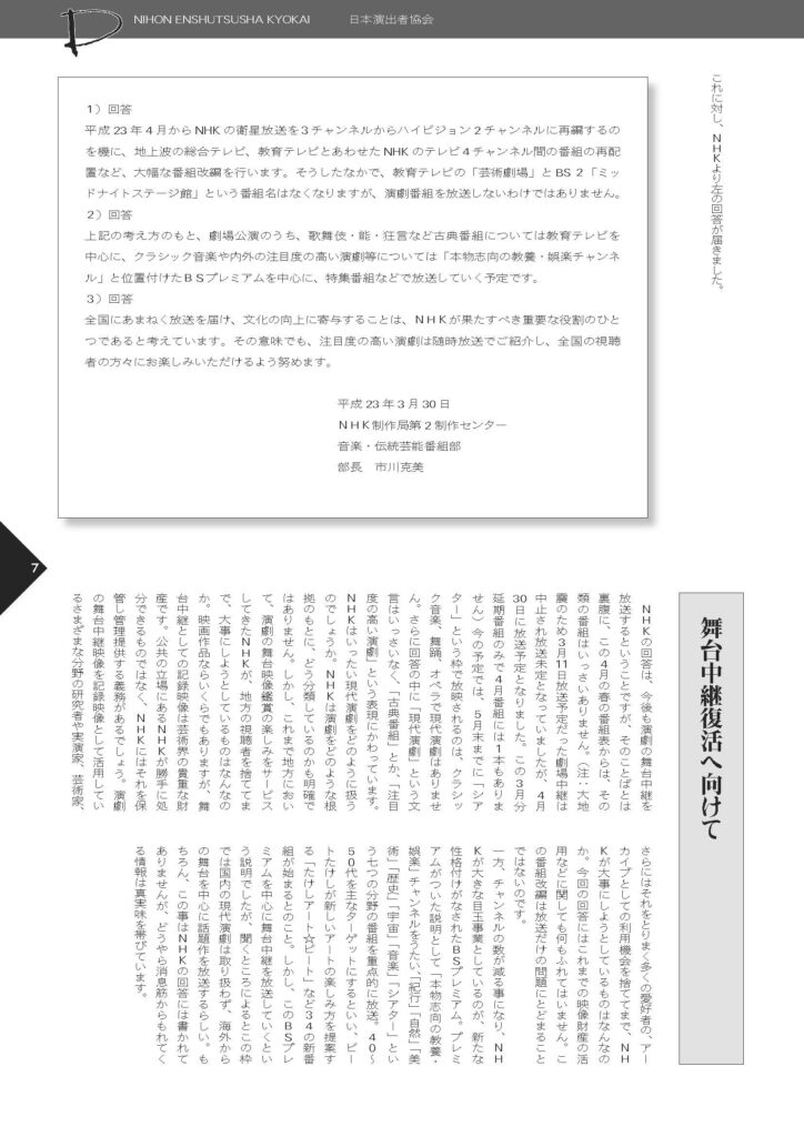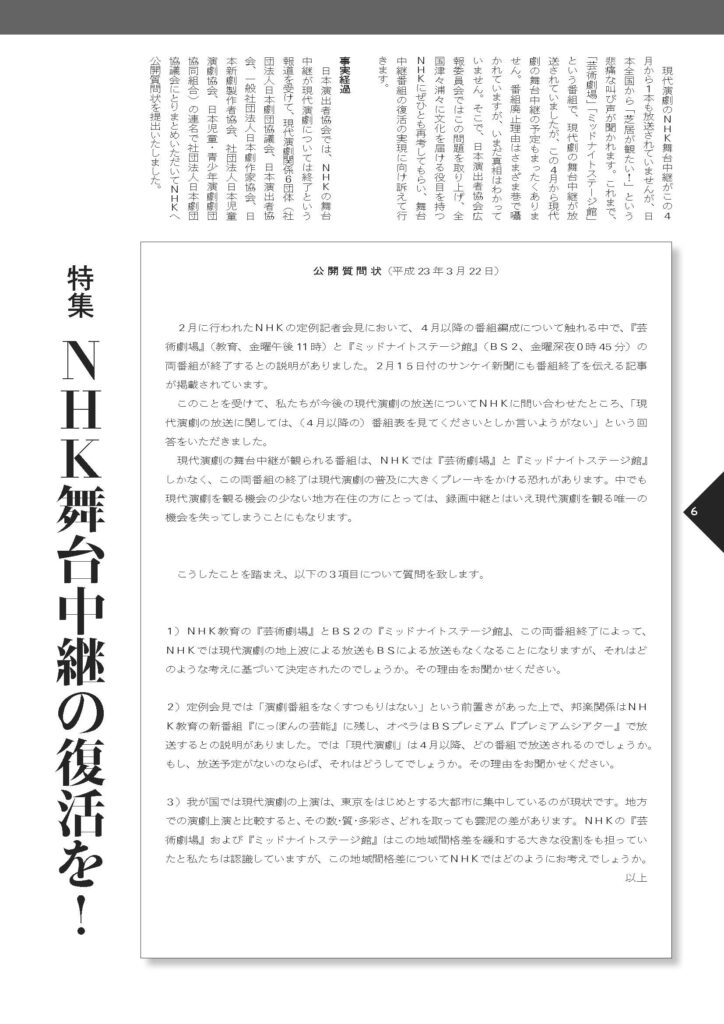 号外『復興!東日本大震災2011.3.11』 特集『NHK劇場中継の復活を!』